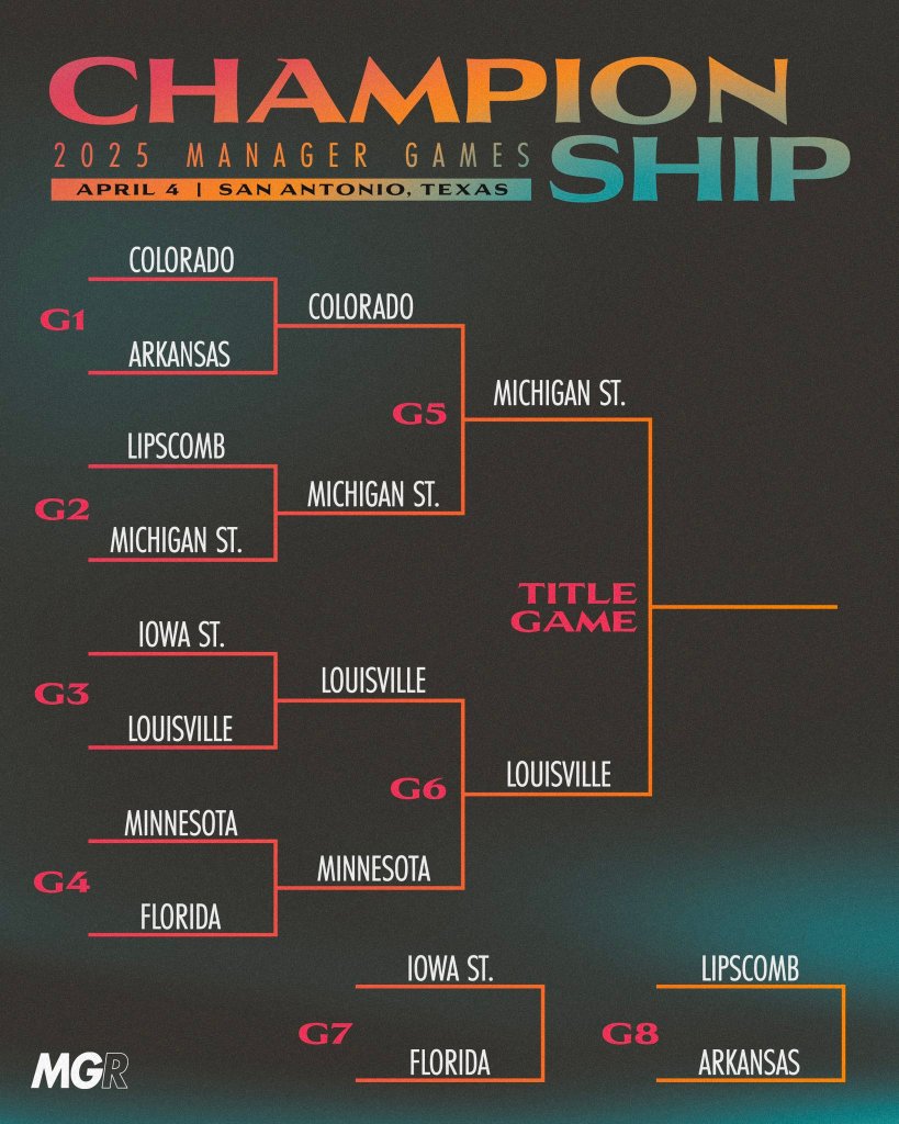 | Finalists | Arkansas Colorado Florida Iowa State Lipscomb Louisville Michigan State Minnesota |